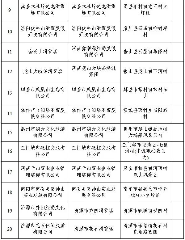发放活动滑雪运动场所名单