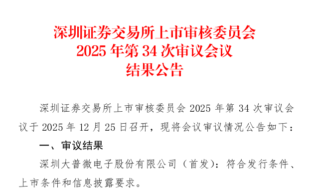 【大河财立方消息】12月25日,深交所上市委审议通过深圳大普微电子股份有限公司(以下简称:大普微)创业板首发事项。这也是创业板首家过会的未盈利企业。