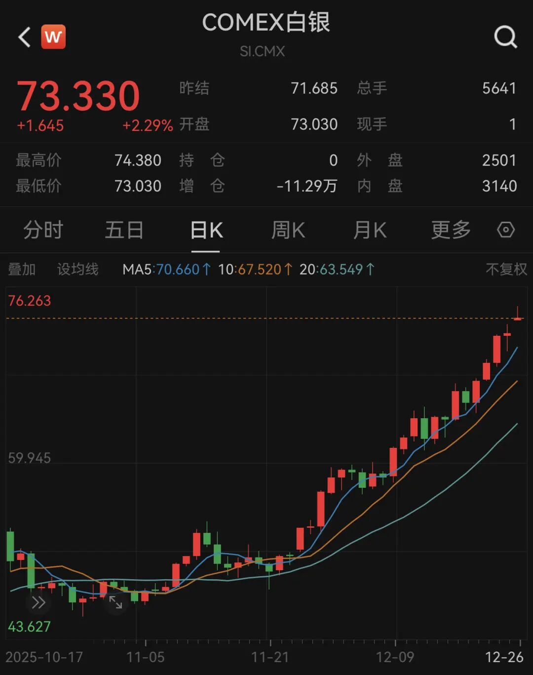 白银续创历史新高。