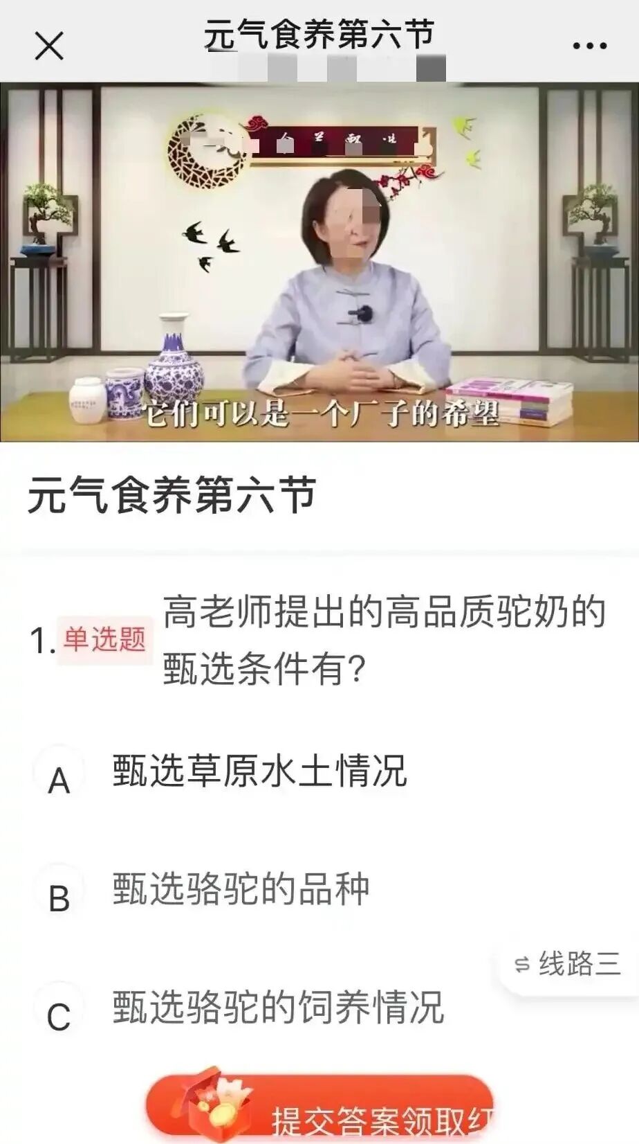 有私域直播群的课程包装成养生科普课,通过答题互动渗透宣传产品。图片源自网友截图