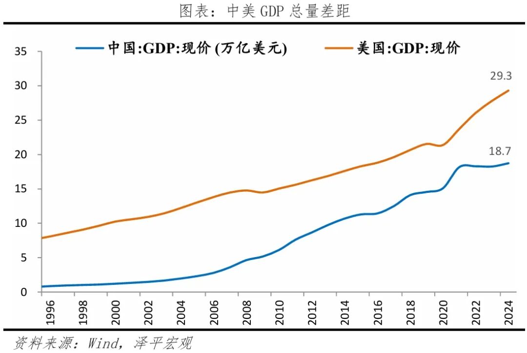 2024年中国GDP规模为135万亿元,相当于美国的65%左右,人均GDP为美国六分之一,中国14亿人,美国3.4亿人,中国经济发展潜力更大,如果按照5%左右的中速增长,十年左右中国将成为世界第一大经济体。