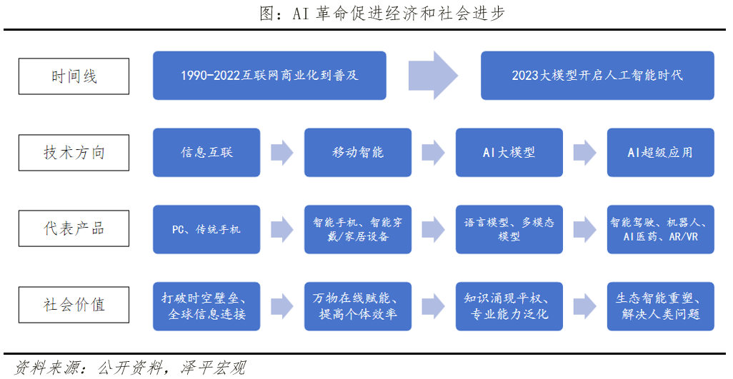过去二十年,互联网技术渗透到生产生活各个领域,催生了电商、移动支付、直播、短视频、智能手机、新媒体这些超级应用。“人工智能+”未来将催生新一批AI超级应用。