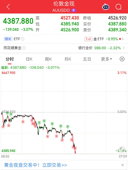 12月29日消息,伦敦银现跌11.15%,报72.67美元/盎司;伦敦金现跌3.07%,报4387.88美元/盎司。