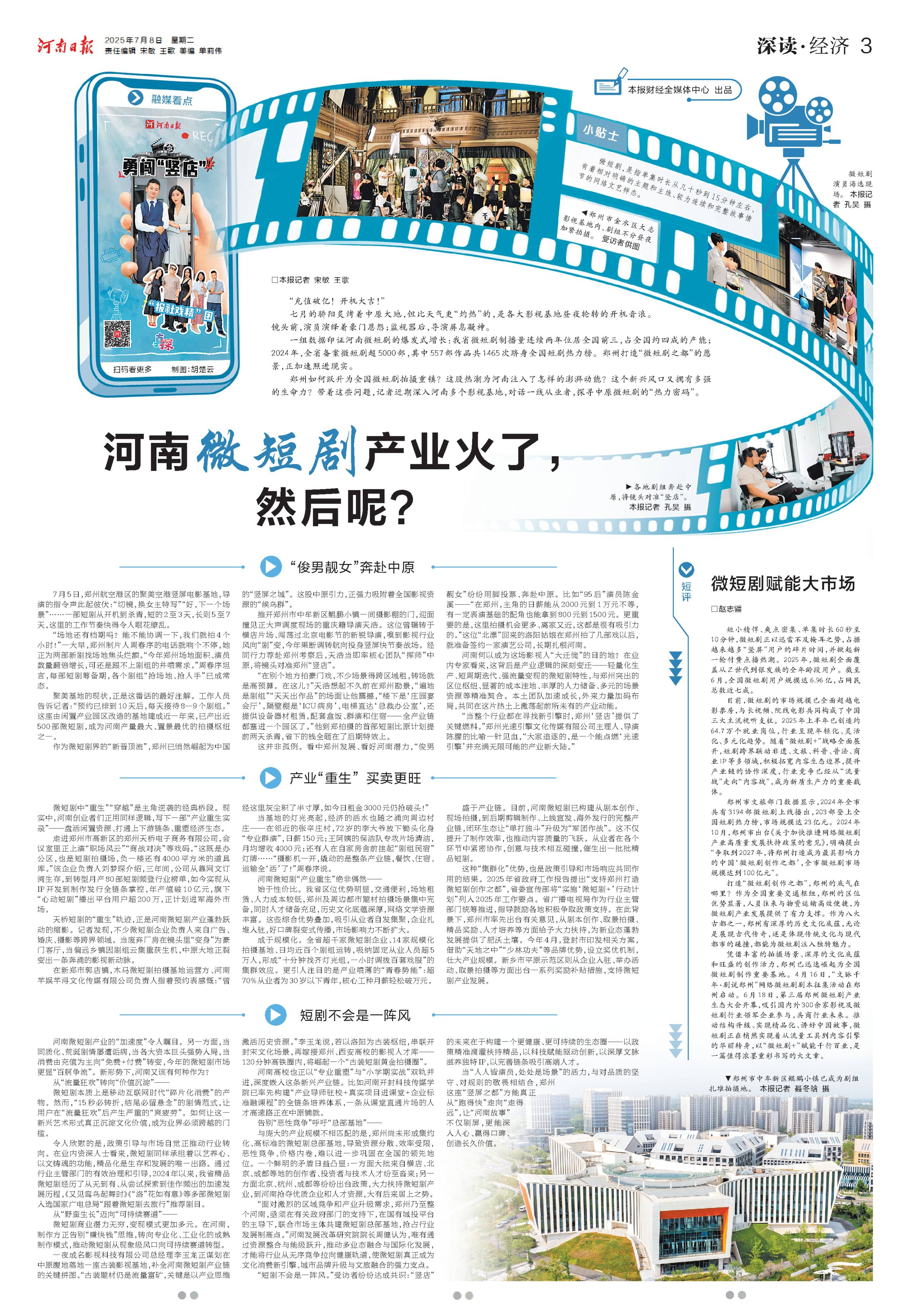 今年,河南日报采写的《河南微短剧产业火了,然后呢?》,引发业界共鸣和深思:流量数据很重要,但微短剧总得留下点什么。于是更多人在埋头赶路之余,也开始抬头眺望远方。