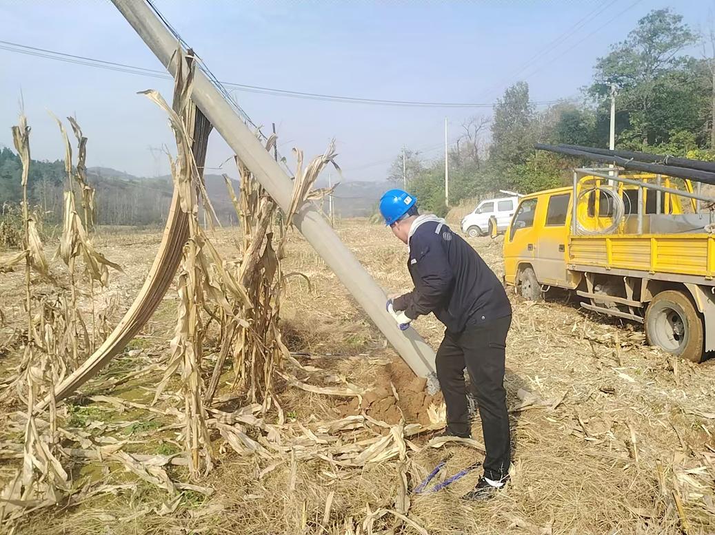 11月13日清晨,中国移动河南公司济源分公司党员突击队驱车50余公里抵达曹腰村。面对求助人无法精确描述位置的困难,突击队未简单回拨,而是立即联系村委,通过多方打听、实地排查,最终在坡地锁定隐患点。经现场勘察,队员迅速制定方案, 立杆、紧线、固定、抬升……一系列操作专业而迅捷。杆路被重新扶正加固,垂落的光缆被规范提升至安全高度,潜在 的风险被彻底排除。整个过程高效有序,于当日中午12时前全部处理完毕。 承包户任先生现场确认后连声道谢,表示农机已可进场,心中踏实。