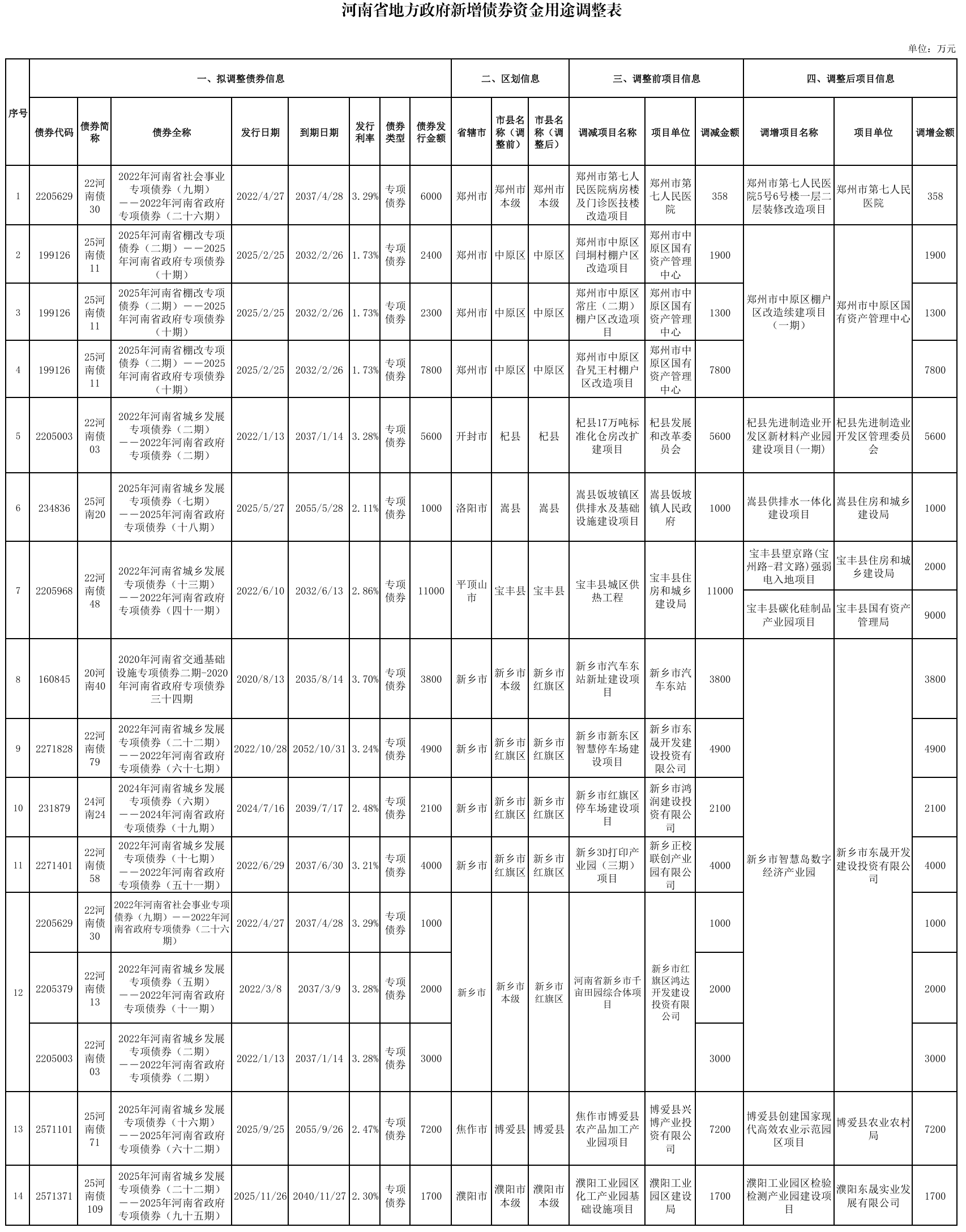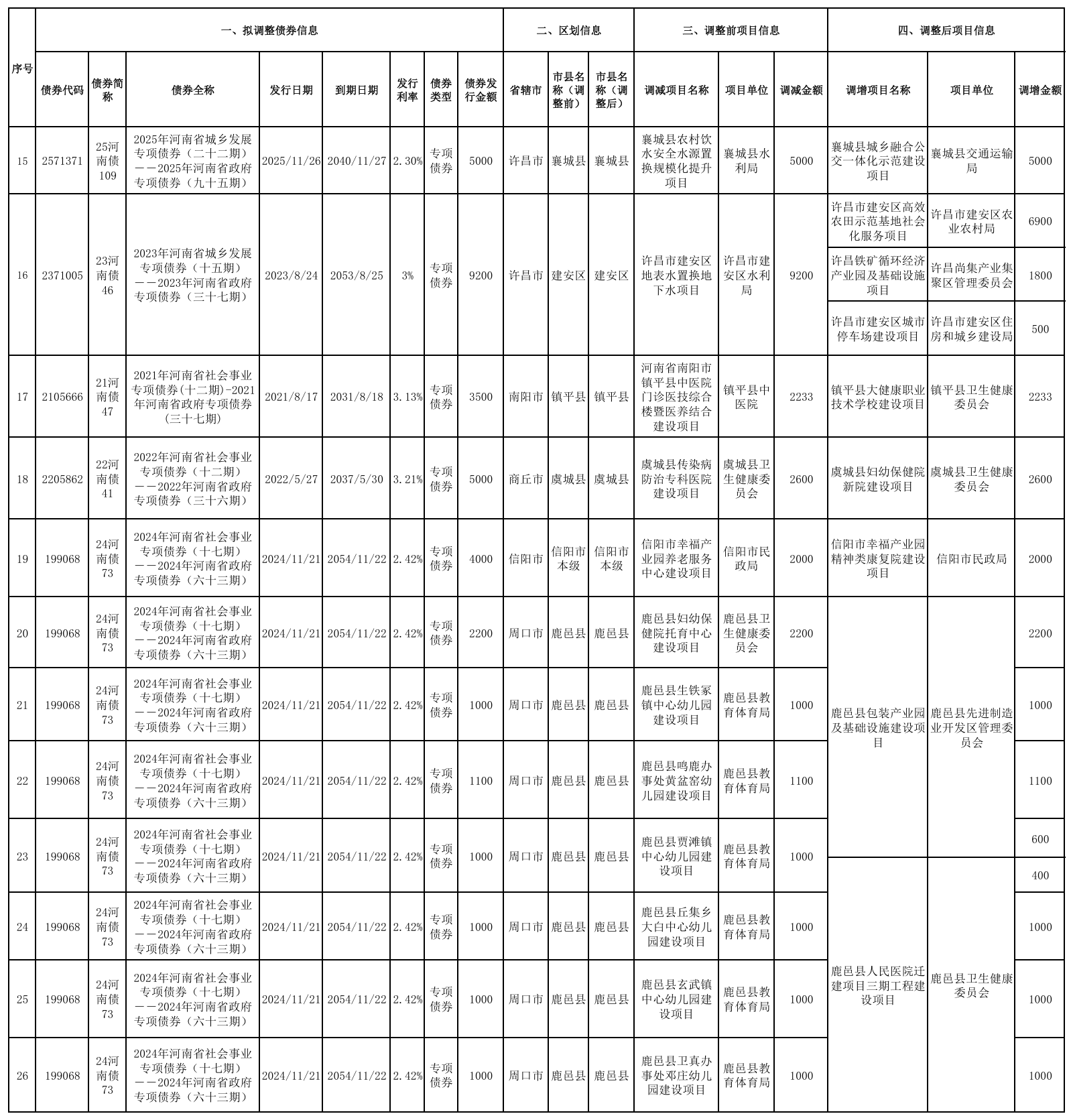 【大河财立方消息】12月30日,河南省财政厅发布公告,调整部分新增债券资金用途,涉及26个项目。