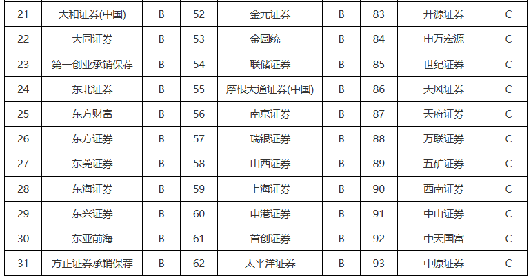 具体看,A类券商包括东吴证券、国金证券、国泰海通、国投证券、国信证券、华泰联合、平安证券、长城证券、招商证券、中金公司、中信证券、中银证券。
