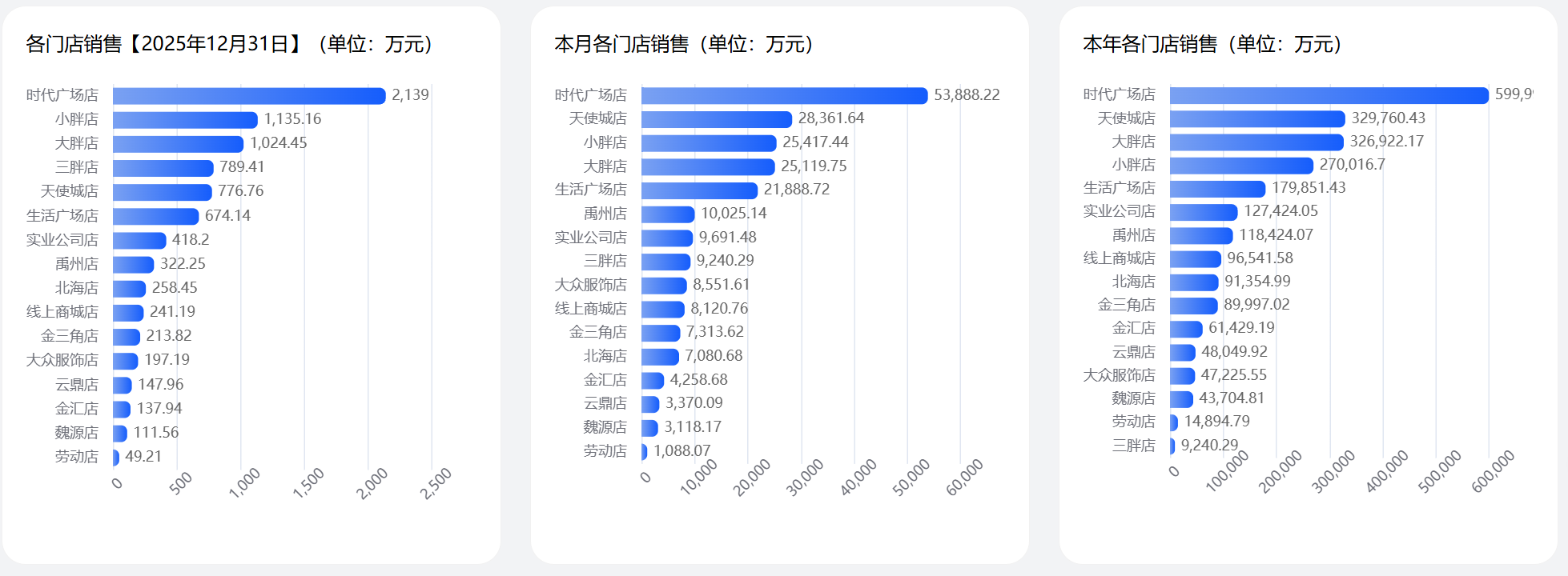 各门店销售数据显示,时代广场店摘得销售冠军,单店销售近60亿元;其次为天使城店,销售额32.98亿元。值得注意的是,胖东来最新店面新乡“三胖”店自12月23日试营业以来,截至目前,销量已经达到9240万元。