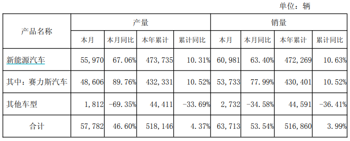 【大河财立方消息】1月5日,赛力斯披露2025年12月份产销快报。
