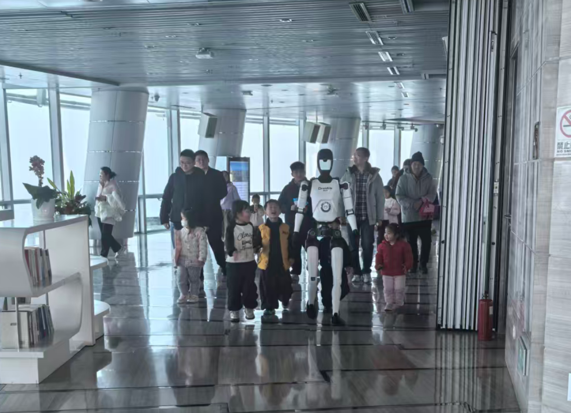 李猛认为,郑东新区千玺广场58楼城市观光厅的场景,刚好介于非常复杂和非常简单之间,这个场景既有阶段性人流量大的特点,又方便设计固定路线,对人形机器人的数据采集、训练很有帮助。