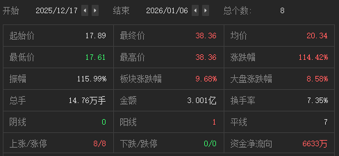 【大河财立方消息】1月6日,浙江锋龙电气股份有限公司(简称锋龙股份)股价连续第8个交易日涨停,累计涨幅144.42%。