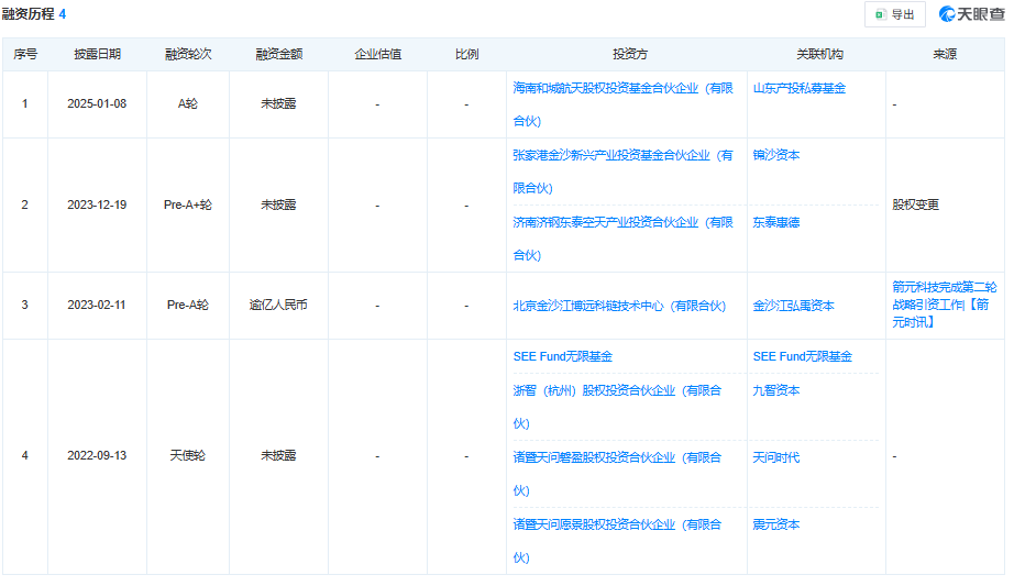天眼查App显示,箭元科技已完成四轮融资,从投资方看,箭元科技不仅获得了金沙江资本、SEE Fund等知名创投公司的支持,同时也吸引了一众具有产业背景的国资的支持。