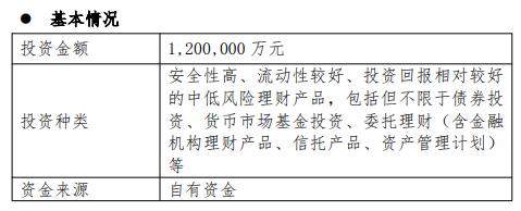 【大河财立方消息】1月8日,天能电池集团股份有限公司(证券简称:天能股份)发布公告称,公司及子公司拟使用最高余额不超过人民币120亿元(含本数)的暂时闲置自有资金进行委托理财,投资安全性高、流动性较好、投资回报相对较好的中低风险理财产品,包括但不限于债券投资、货币市场基金投资、委托理财(含金融机构理财产品、信托产品、资产管理计划)等。