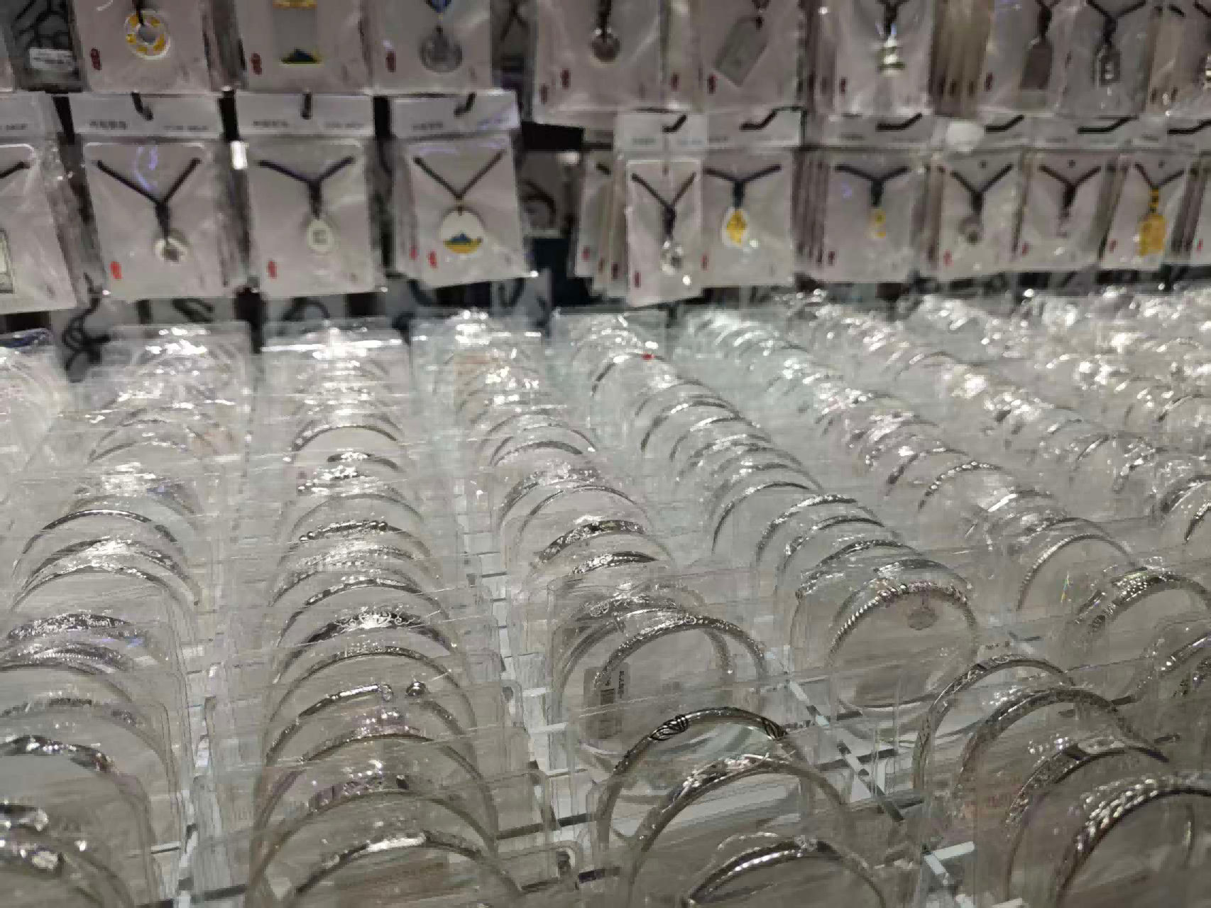按照常规的销售思路,商家往往会把最畅销或价值最高的商品放置于显眼之处。记者走访水贝银座商场负一楼注意到,白银店铺往往会将银条放在入口处,而面积小一些的白银档口则将各种款式的银手镯放在显眼之处。