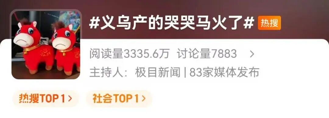 1月10日,#义乌产的哭哭马火了 登上热搜第一。