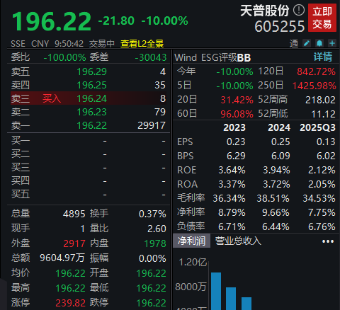 天普股份开盘一字跌停,消息面上,天普股份被证监会立案调查。