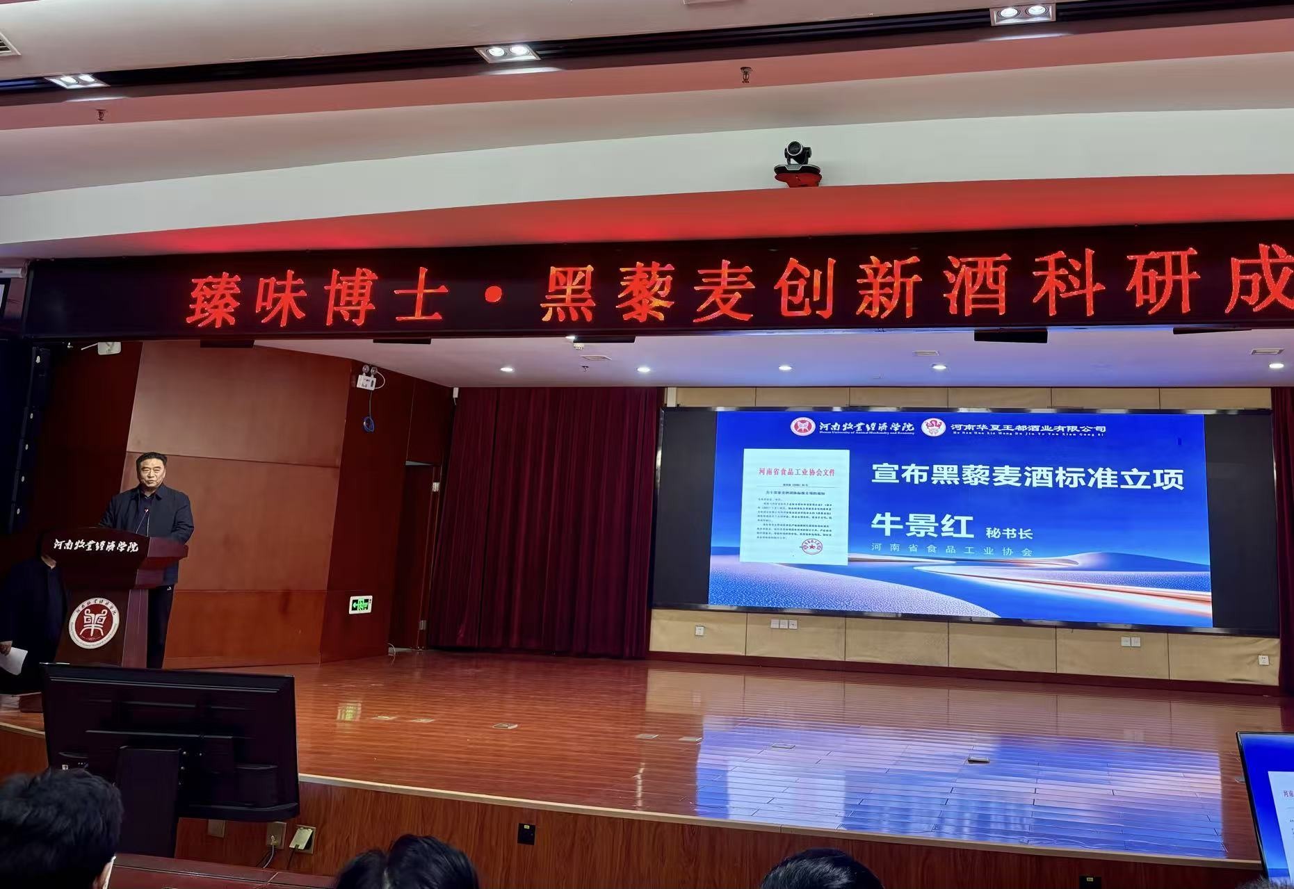 【大河财立方 记者 吴海舒 文图】如何让年轻消费者回归白酒消费?当消费理念发生变化,食品产业的创新有哪些新趋势?1月10日下午,河南牧业经济学院与河南华夏王都酒业有限公司联合举办的“产学研合作暨臻味博士·黑藜麦酒科研成果发布会”举行,历时4年多研发的黑藜麦酒上市。会上,河南省食品工业协会秘书长牛景红宣布黑藜麦酒团体标准正式立项。