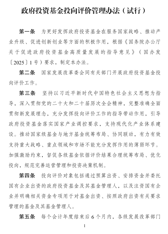 【大河财立方消息】1月12日,国家发展改革委发布《政府投资基金投向评价管理办法(试行)》。