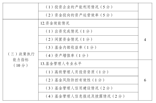 (三)政策执行能力指标,主要评价资金效能情况及基金管理人专业水平等。