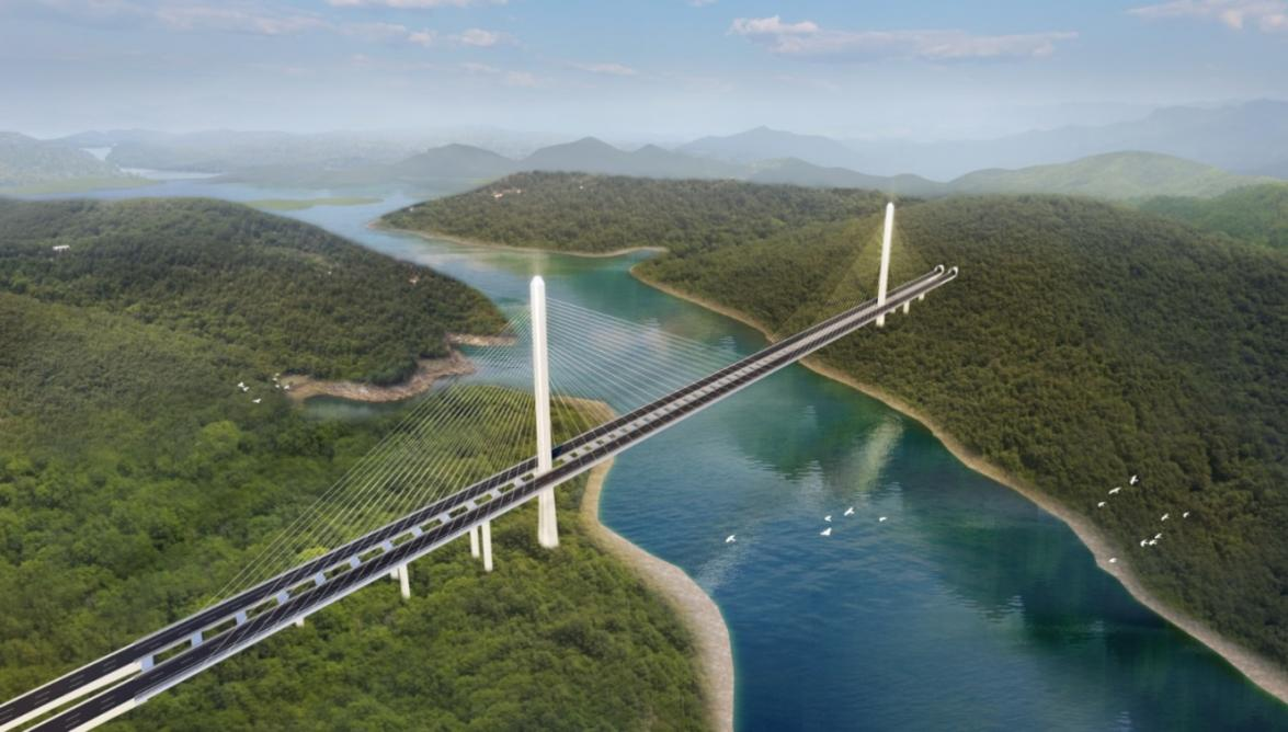 2025年底通车的17条高速公路中,由中工设研院设计的渑淅高速淅川至豫鄂省界段路段穿越淅川丹阳湖国家湿地公园、河南丹江湿地国家级自然保护区、丹江口水库(河南辖区)饮用水水源保护区等众多环境敏感点,对项目建设提出了近乎苛刻的要求,设计团队通过科学比选,运用BIM等手段,攻克技术难关,完成的小三峡特大桥主跨跨径536m,成为国内最大跨径的跨峡谷分离式混合梁斜拉桥,是河南目前跨径最大、主塔最高的桥梁。