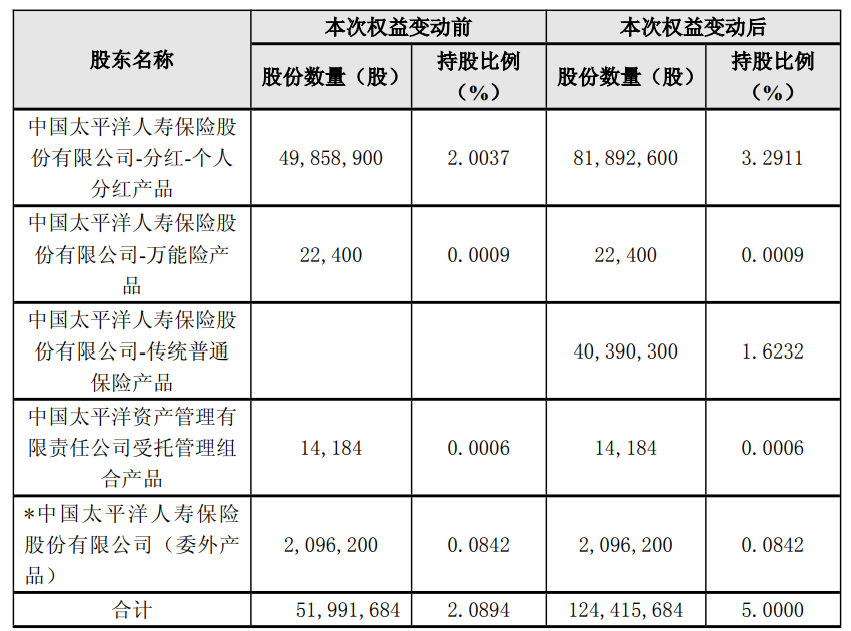 本次增持股份的资金来源为太保资产受托管理的保险资金,具体包括,太保寿险个人分红产品、太保寿险万能险产品以及太保寿险传统普通保险产品等。