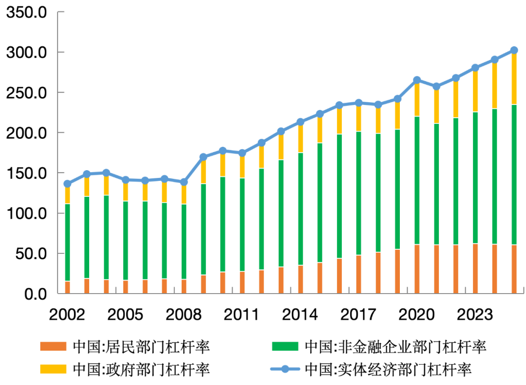 图5 中国年度宏观杠杆率及其部门构成(单位:%)