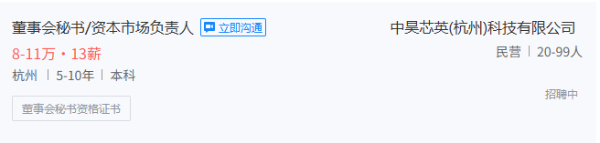 【大河财立方消息】1月19日消息,中昊芯英在招聘平台发布招聘信息,计划招聘董事会秘书/资本市场负责人。