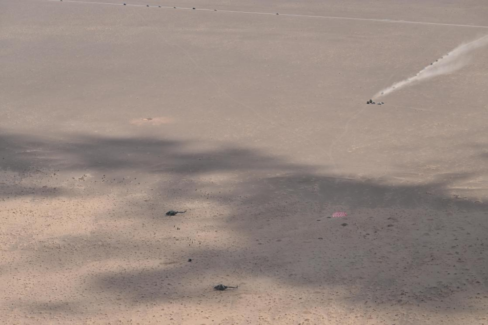 16时40分,神舟二十一号飞船返回舱在东风着陆场成功着陆。空中分队、地面分队、信息支援分队、无人机分队第一时间向落点集结。