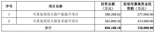 蓝箭航天此次发行股份募集资金扣除发行费用后,将全部用于可重复使用火箭产能提升项目、可重复使用火箭技术提升项目。