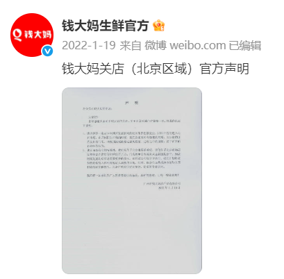 资料显示,2020年钱大妈首次进入北京市场,但在2022年便关闭了大量门店。