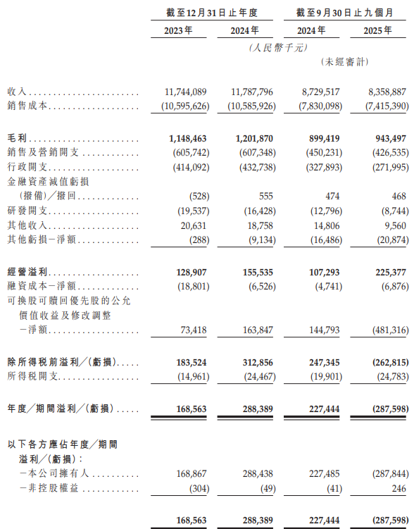 根据香港会计准则,公司估值越高,优先股公允价值越高,差额部分需计入当期损失,这也成了其2025年前三季度净利润亏损的主要因素。