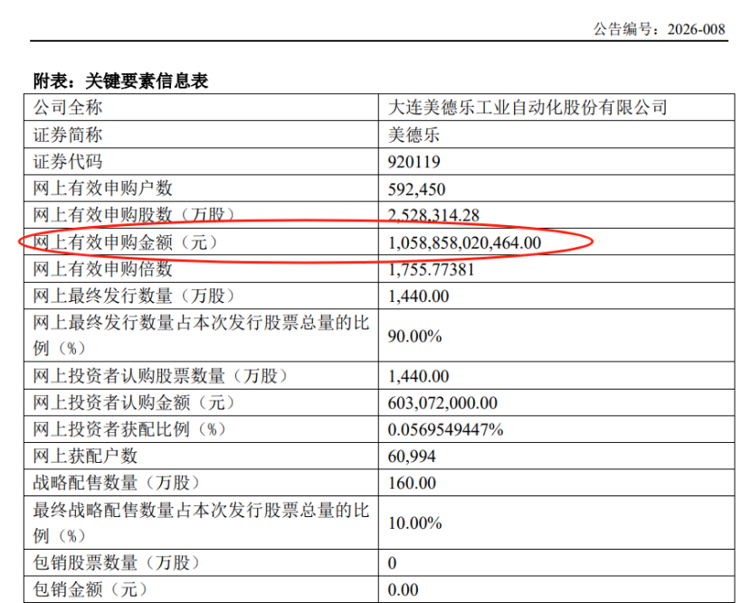 1月25日,北交所新股美德乐公布了新股发行结果。结果显示,美德乐的新股网上有效申购金额高达10588.6亿元,这是北交所新股申购资金首次突破万亿元关口,创了历史纪录。
