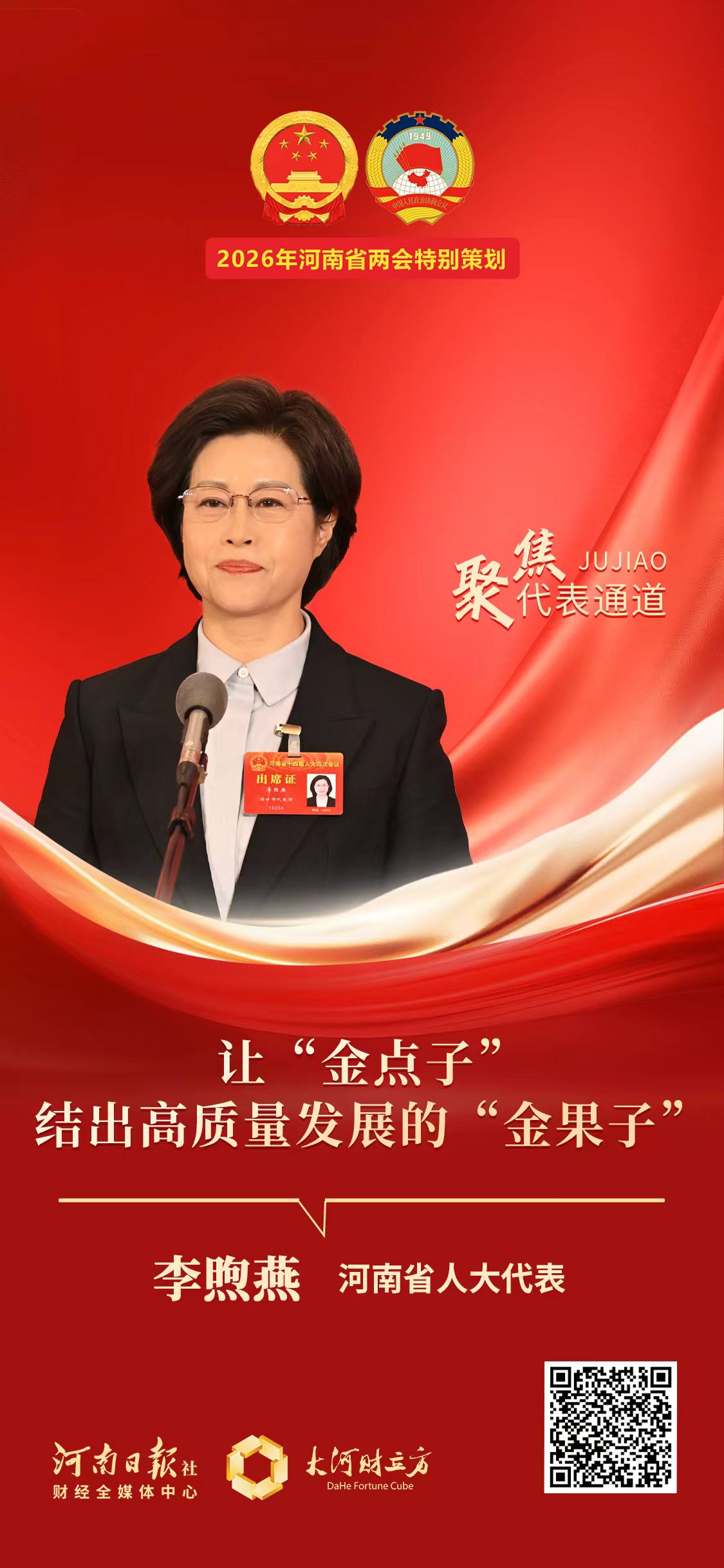 【大河财立方 记者 闫文瑞 文 洪昊旸 摄影】 1月26日上午,河南省十四届人大四次会议代表通道开启。河南省人大代表、北京大成(郑州)律师事务所党总支书记李煦燕表示,要让“金点子”结出高质量发展的“金果子”。