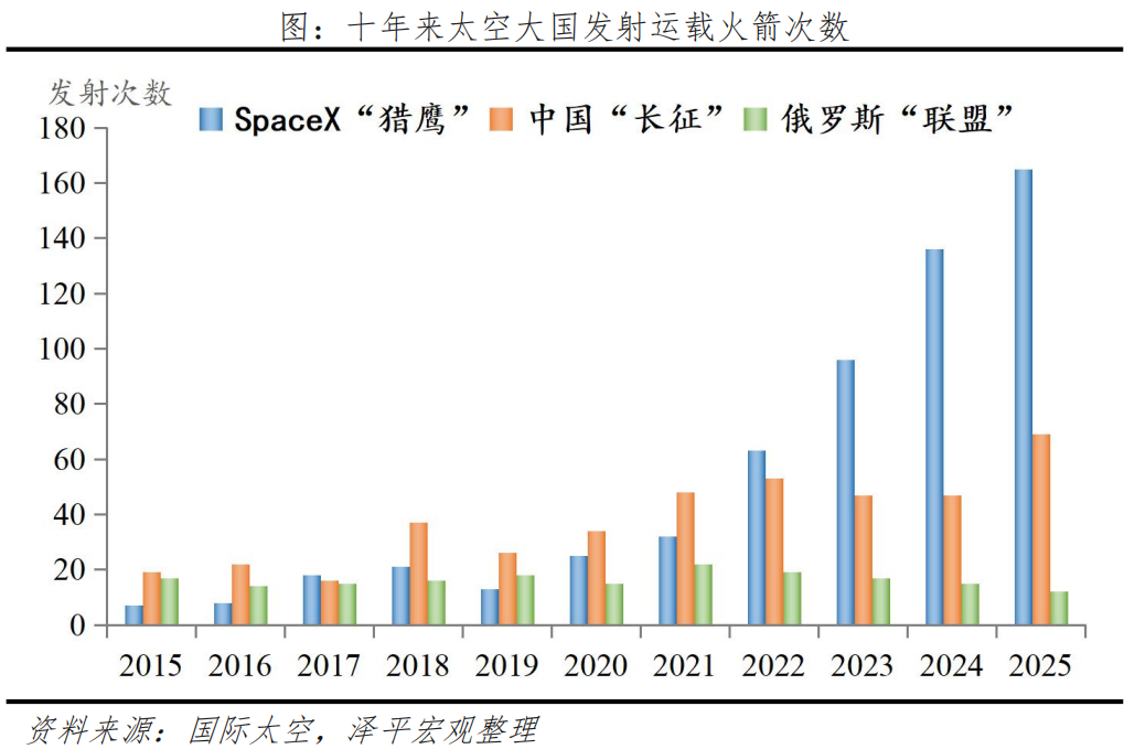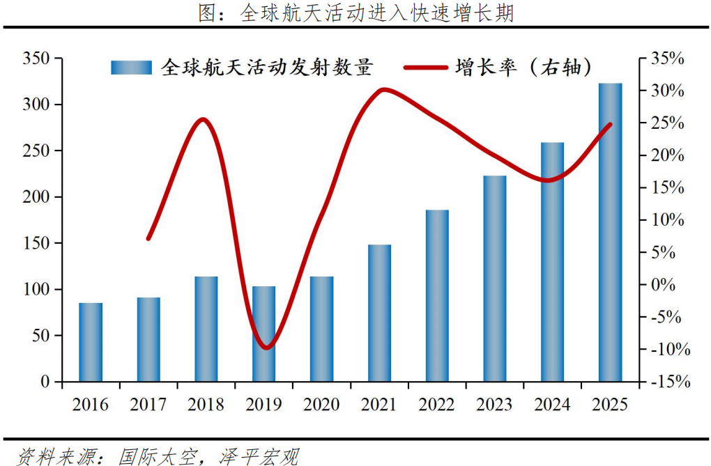 中国的商业航天主体,发射频率高、增速快,2025年发射次数达92次,同比增长35%。新申请超20万颗卫星频轨资源,是全球近地轨道在轨卫星数量的12.5倍,中国商业航天市场需求潜力巨大。