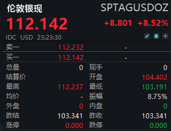 【大河财立方消息】1月26日,现货白银盘中突破112美元/盎司,日内涨8.52%。年初至今,现货白银已经涨超56%。