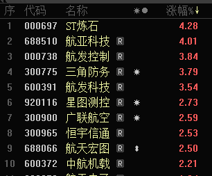 板块内个股ST炼石、航亚科技涨超4%,航发控制、三角防务、航发科技等涨超3%。