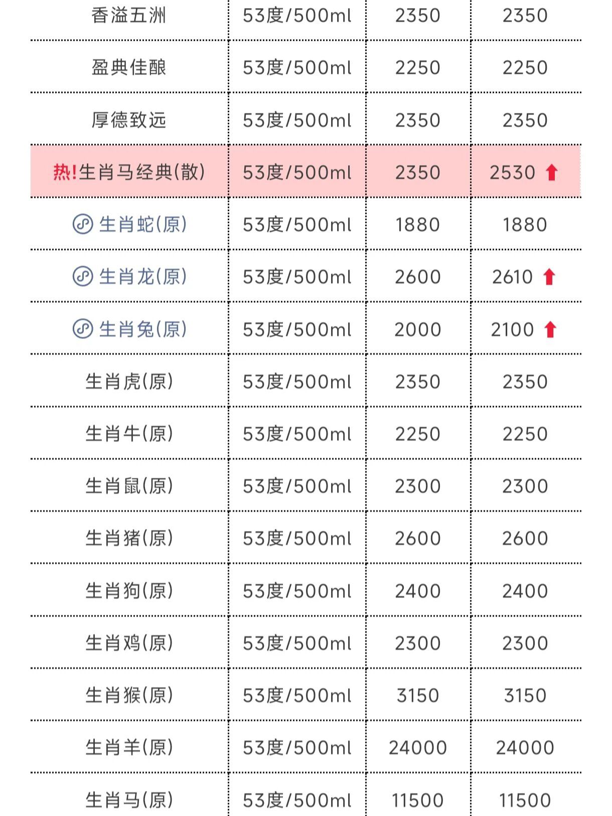 而飞天茅台生肖马经典散瓶报2530元/瓶,较昨日2350元/瓶上涨200元。