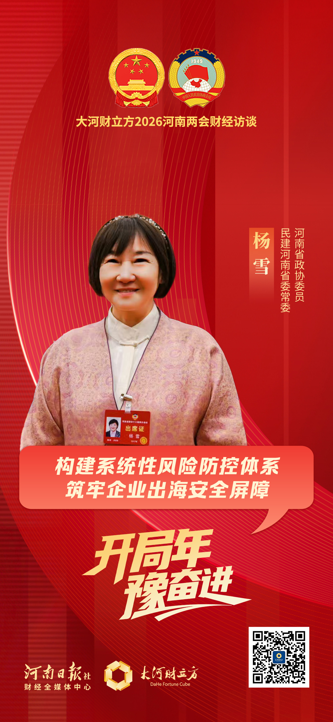 2026年河南省两会期间,省政协委员、民建河南省委常委杨雪在接受大河财立方记者采访时表示,为进一步提升企业抗风险能力,建议构建一套由政府引导、企业主体、专业支撑、社会协同的系统性海外风险防控体系,为民营企业出海筑牢安全屏障。