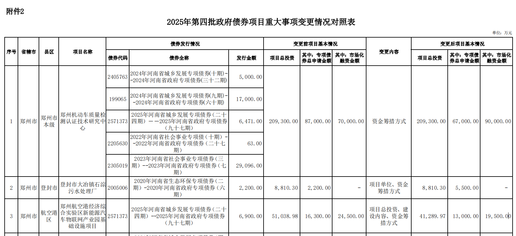 附:2025年第四批政府债券项目重大事项变更情况对照表