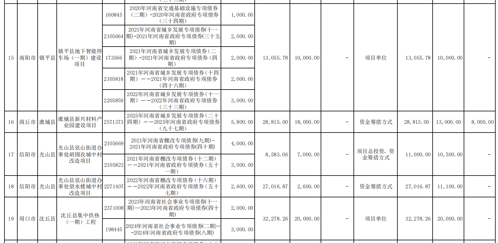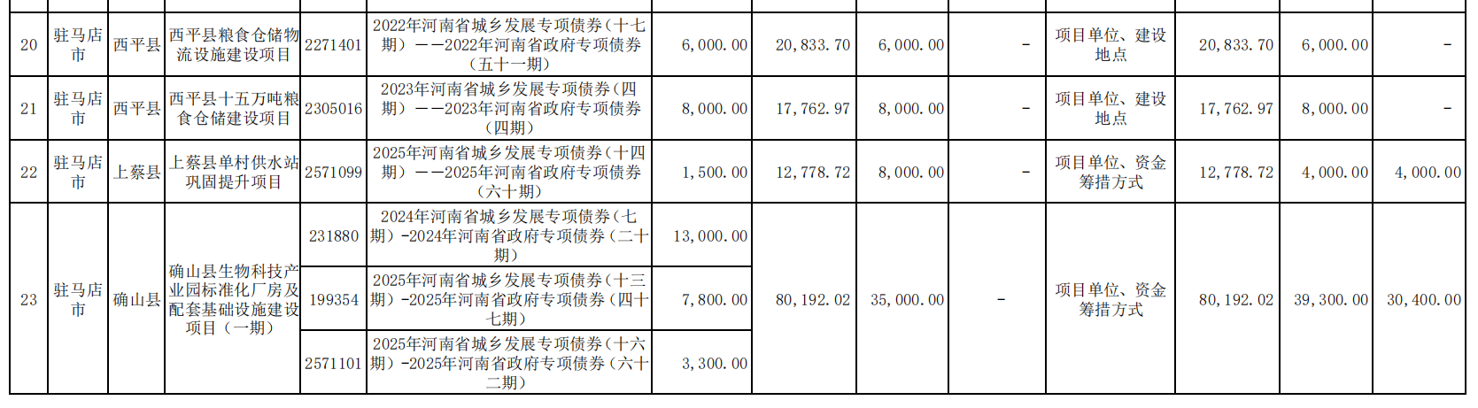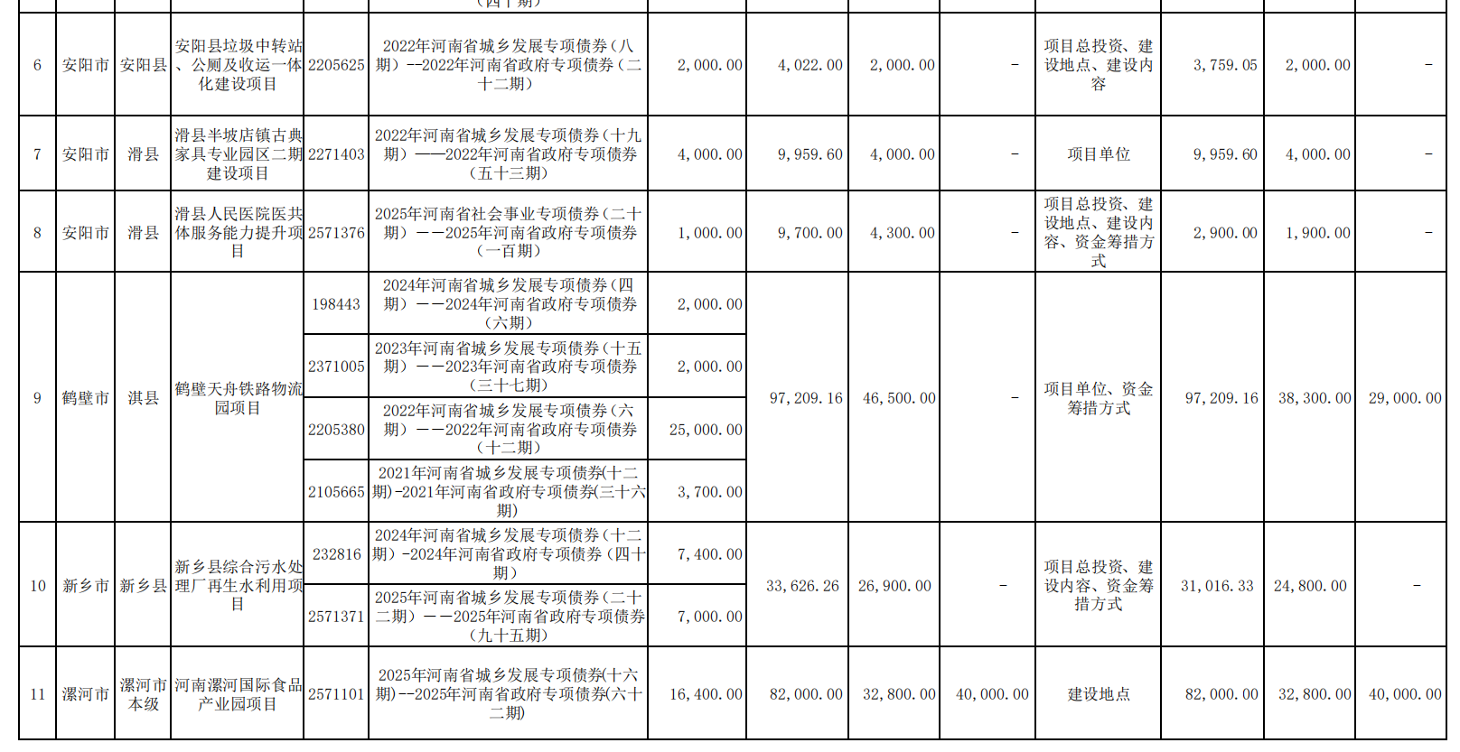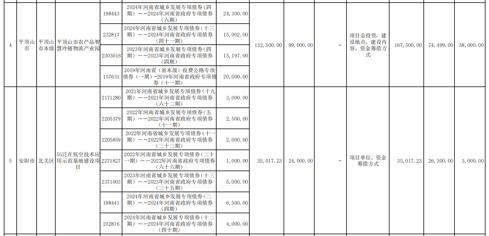 根据公告,共有23个专项债项目重大事项变更,如:郑州航空港经济综合实验区新能源汽车物联网产业园基础设施项目,投资总额由5.10亿元调整为4.13亿元,专项债申请金额由1.63亿元降至1.3亿元,市场化融资金额由2.45亿元降至1.95亿元。