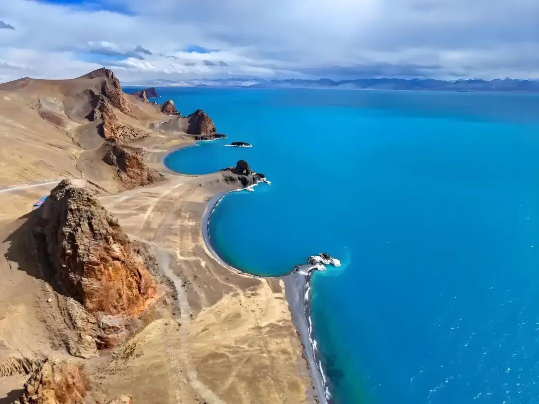那是纳木措。它不是湖,是海,是倒悬的天空,是大地上一颗剧烈跳动着的蓝色心脏。它的蓝,是层次分明的、有生命的。近处是清浅的绿松石色,细腻的浪花轻吻着湖岸的砂石;往深处去,蓝得愈发浓郁、纯粹,像是融化了最昂贵的蓝宝石,又像是仙女将整个天空的染料都倾倒于此。阳光毫无保留地倾泻下来,湖面便碎了万点金光,随着微波荡漾,跳跃闪烁,与远处念青唐古拉山主峰的冷峻洁白形成绝妙的呼应。
