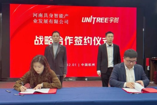 2月1日,河南具身智能产业发展有限公司与宇树科技在杭州宇树科技总部举行战略合作签约仪式。