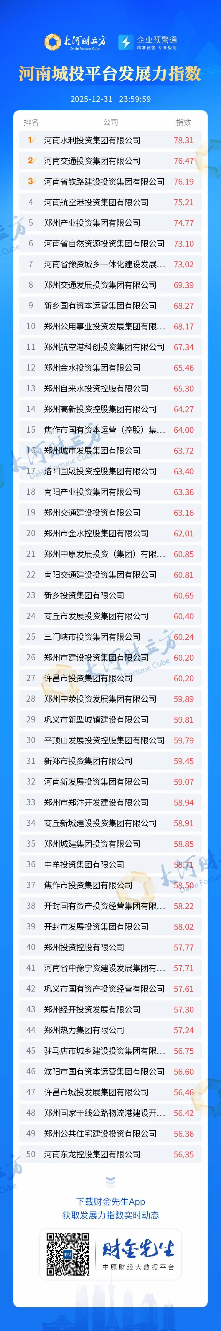 【大河财立方 记者 李国庆】2月2日,河南城投发展力2025年年度指数正式公布。