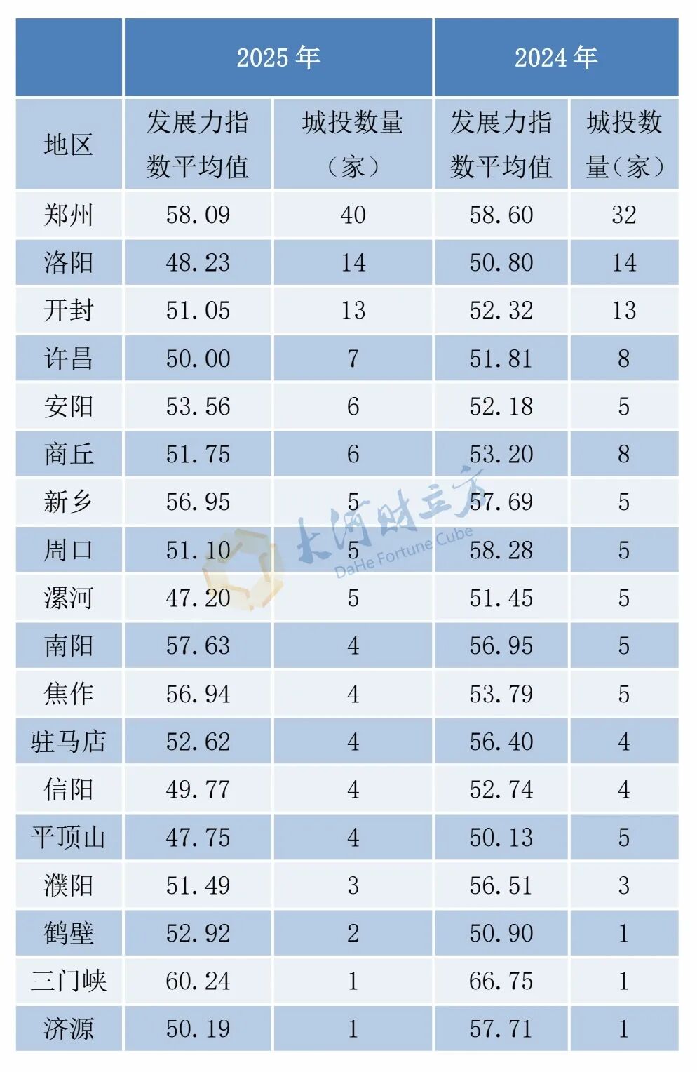 整体来看,河南城投2025年发展力指数平均值为54.50分。相对于2024年总体上保持稳定。