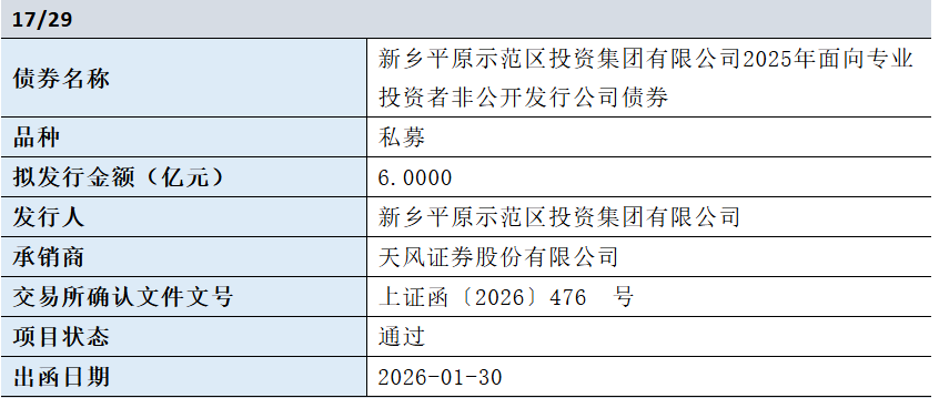 【大河财立方消息】2月2日,新乡平原示范区投资集团有限公司2025年面向专业投资者非公开发行公司债券,获上交所通过。