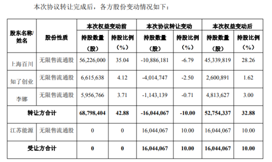 公告显示,1月30日,公司控股股东上海百川畅银实业有限公司(以下简称上海百川)、实控人李娜、陈功海及其一致行动人郑州知了创业企业管理咨询有限公司(以下合称转让方),与江苏能源物资有限公司(以下简称江苏能源)签署《股份转让协议》,拟以12.68元/股的价格,向江苏能源合计转让10%的公司股份,对应交易总价约2.03亿元。