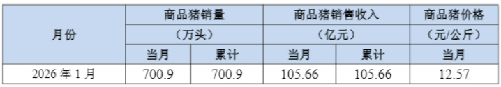 【大河财立方消息】2月5日,牧原股份披露2026年1月份销售简报。