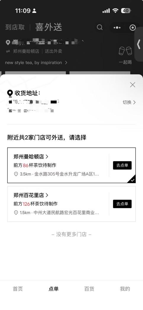 而部分奶茶店也出现了“爆单”,郑州市金水路百花里的喜茶门店,上午11时左右,门店订单排队量已经达到了126单,预计取餐时间超过100分钟。因此,有用户上午9时下单的奶茶,因为门店出餐不及时,出现了超过1小时的超时。