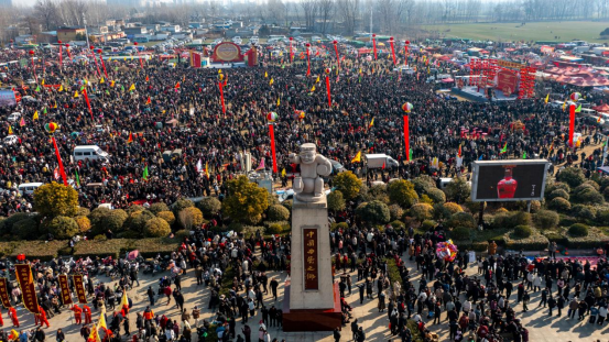 太昊伏羲氏的陵庙位于河南省淮阳县城北1.5公里处,太昊陵庙会每年自农历二月二日开始,到农历三月三日结束,活动持续时间长达一个月,它被称为中国规模最大、历时最长、人数最多的古庙会,被誉为“天下第一庙会”。曾凭借单日超80万游客的流量,创下吉尼斯纪录。