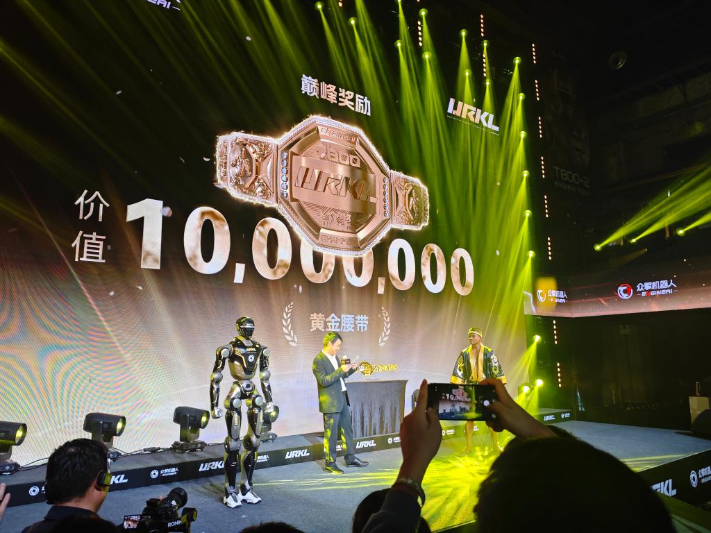 【大河财立方 记者 王宁宁】飞踢、勾拳,从众擎机器人T800登台与泰国拳王播求上演了一场热身拳击赛,到价值1000万元的冠军纯金腰带在舞台上升起,首届全球人形机器人自由格斗联赛(简称URKL)在欢呼声中启动。